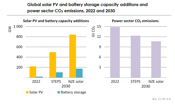 „An important initial point is that rapid further deployment of solar PV in the NZE Solar Case would require measures to integrate the additional solar PV into electricity systems and maximise its impact. Scaling up battery storage would be crucial in most cases to improve the alignment of solar PV output with electricity demand patterns and system needs. In the NZE Solar Case, utility-scale battery deployment in 2030 is close to double the level in the STEPS.”